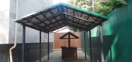 Навес двускатный с зеленым профнастилом для загородного дома Арт-723